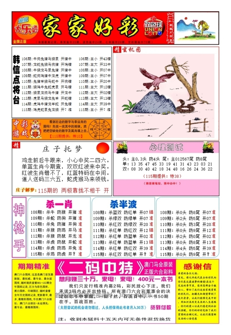 | 115期:六肖中特【蛇龙羊鼠虎猴】开:蛇01准 | |||